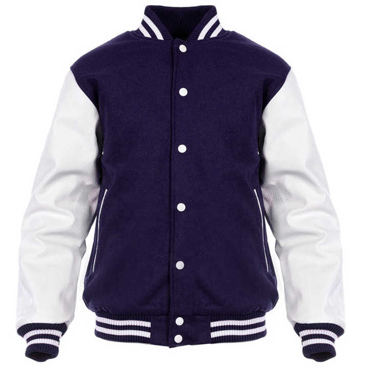 Nineties เสื้อแจ็คเก็ตหนังแท้แขนสั้นสำหรับผู้ชาย, เสื้อแจ็คเก็ตวิทยาลัยวิทยาลัยวิทยาลัยทำจากผ้าขนสัตว์สีกรมท่า