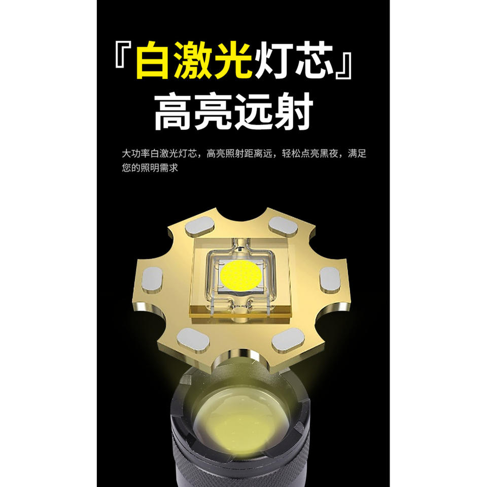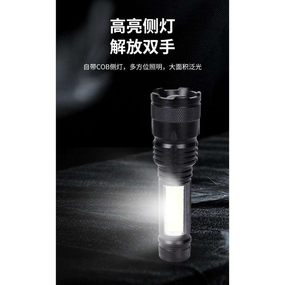 ไฟฉายซูม Ningbo 18650 แบบชาร์จซ้ำได้ พร้อมไฟด้านข้างแบบ Cob สำหรับตั้งแคมป์กลางแจ้งและส่องสว่าง