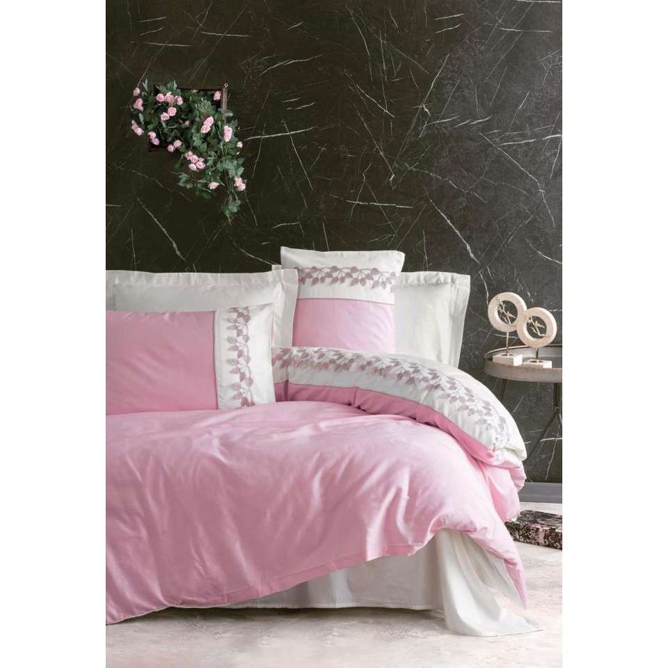 Niobe ชุดปลอกผ้านวมผ้าซาตินสองชั้นปักกล่องผ้าฝ้ายสีชมพู