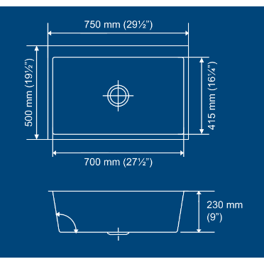 750x500มม. 29 1/2นิ้ว x 19 1/2นิ้วมิติ