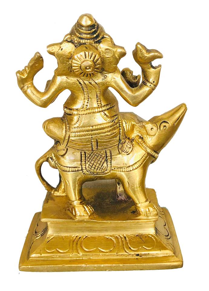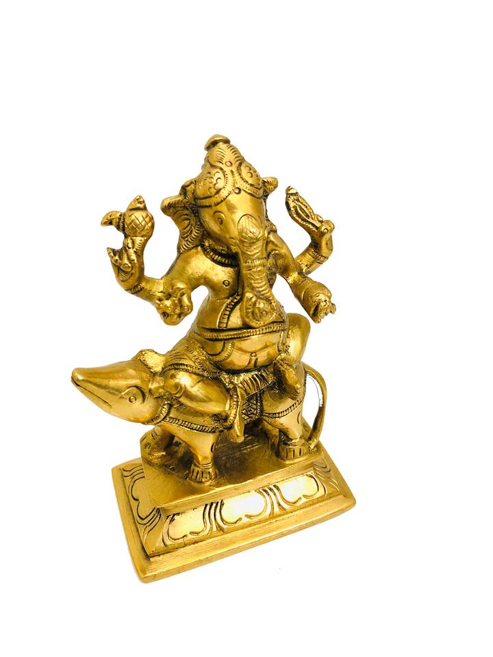พระพิฆเนศทองเหลืองนั่งบนมูชา