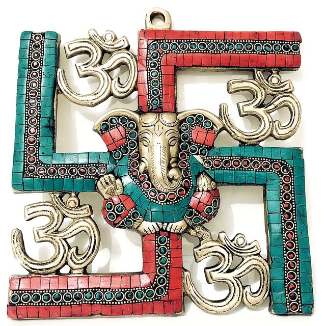 Product Name:Brass Metal Lord Om Swastika Ganesha Wall Hanging Statue Figurine