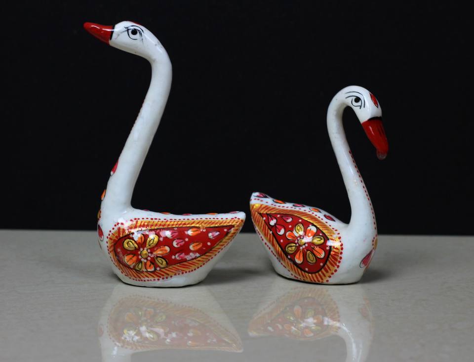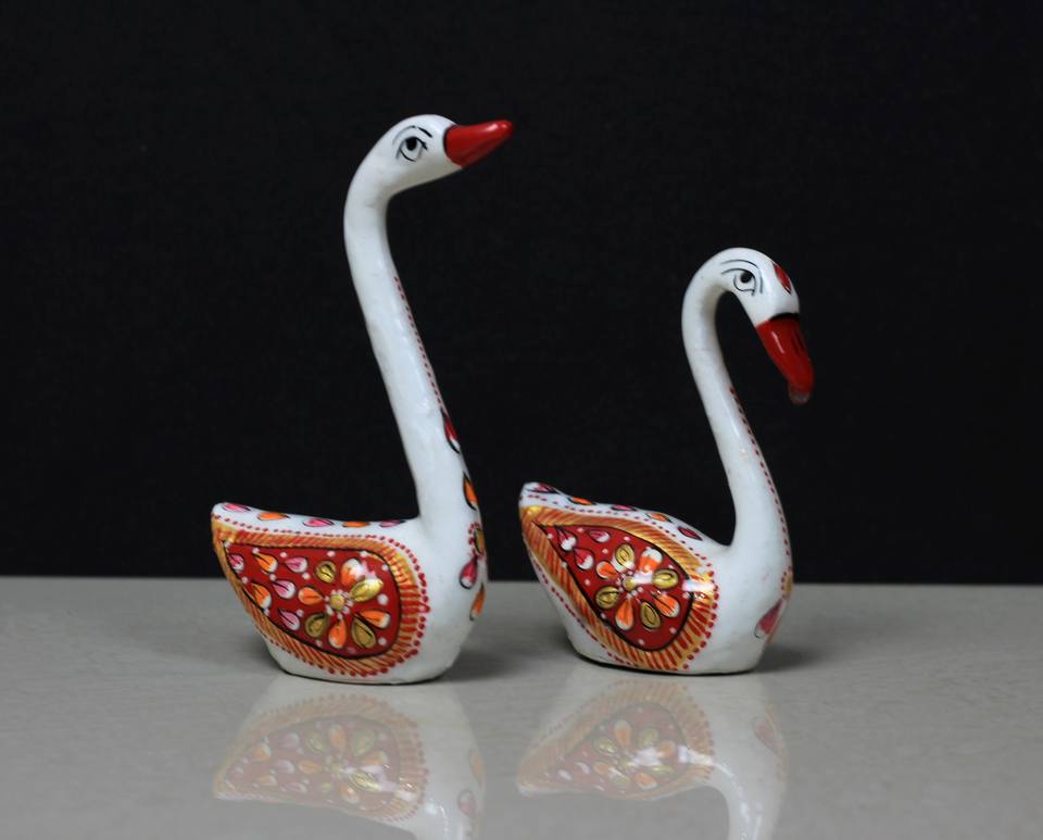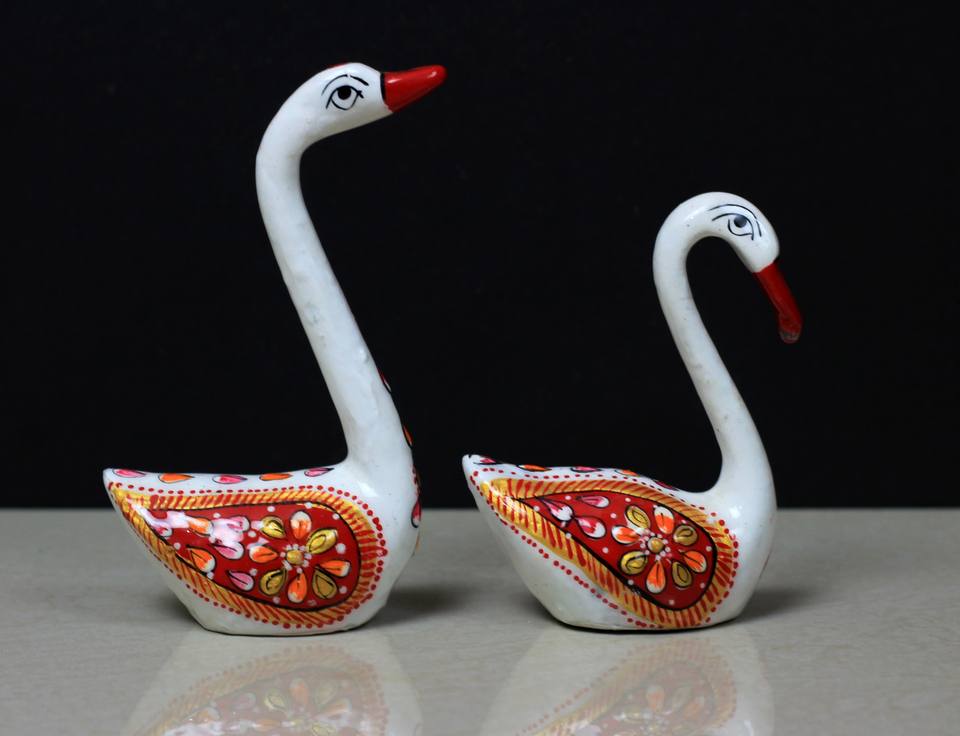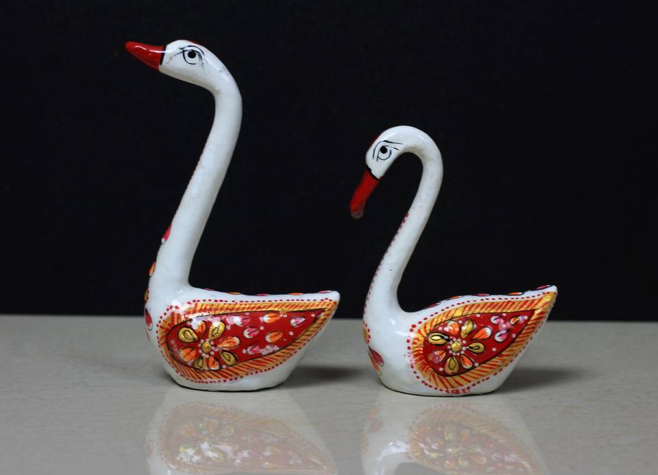 งานฝีมือโลหะรูปหงส์ ชุดรูปปั้นนกคู่รัก งานเคลือบอินเดียทำมือ ของขวัญตกแต่งโต๊ะทำงาน