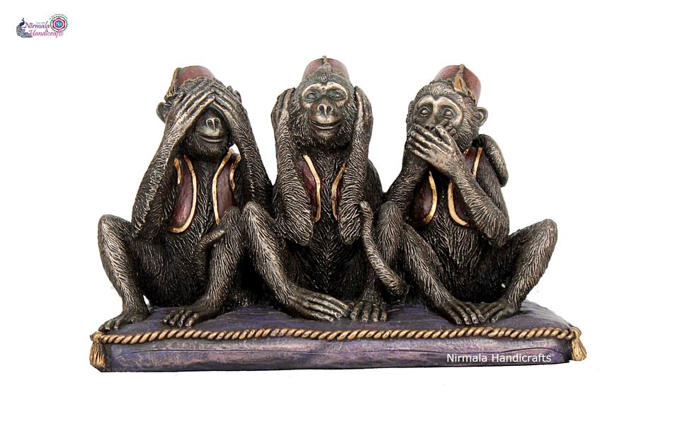 งานฝีมือนิรมลา รูปปั้นลิงสามตัวทำจากเรซิ่นโพลี รูปปั้นพระมหารมณฑ์กันธี ทำด้วยมือในรัฐราชสถาน ของขวัญสำหรับเทศกาลดีวาลี วันเกิด หรืองานแต่งงาน