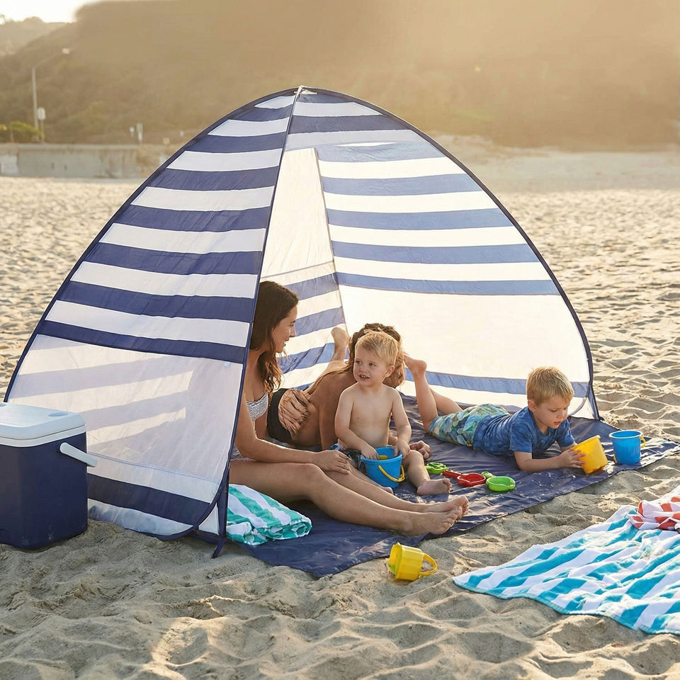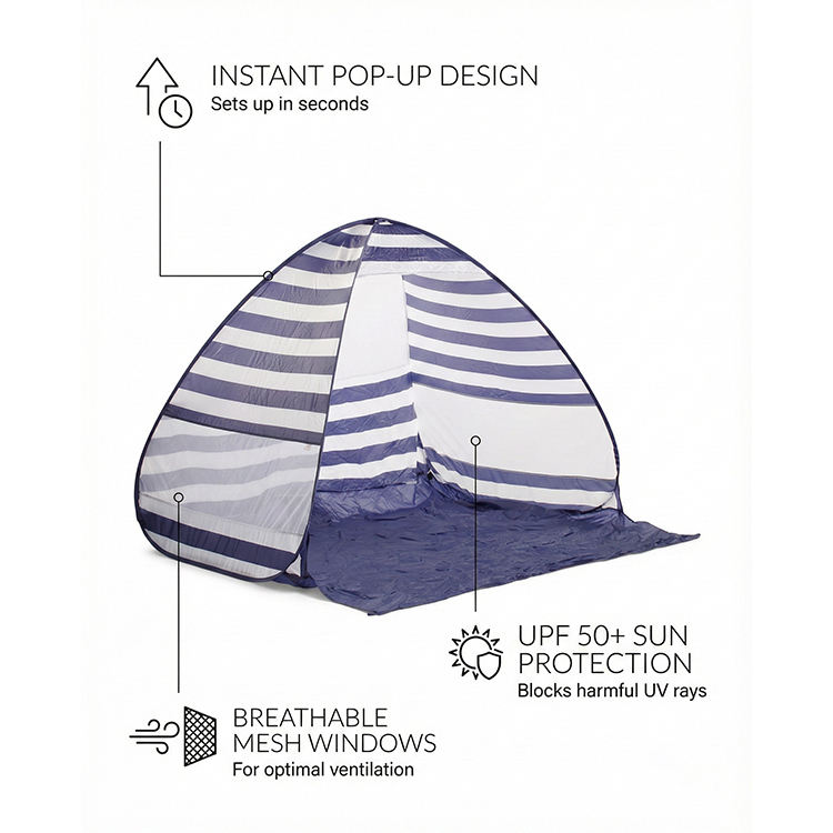 เต็นท์ชายหาด Nissi Custom Logo POP แบบพับได้ โครงสร้างห้องนอนเดียว ป้องกันแสงแดด แบบเสาไฟเบอร์กลาส ขนาด 1000-1500 มม.