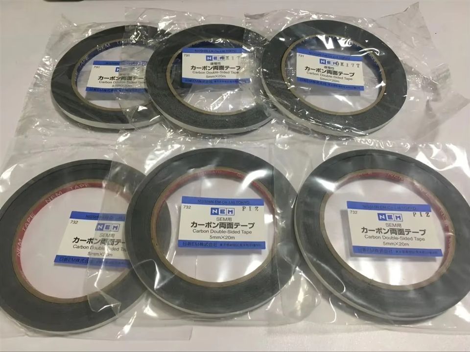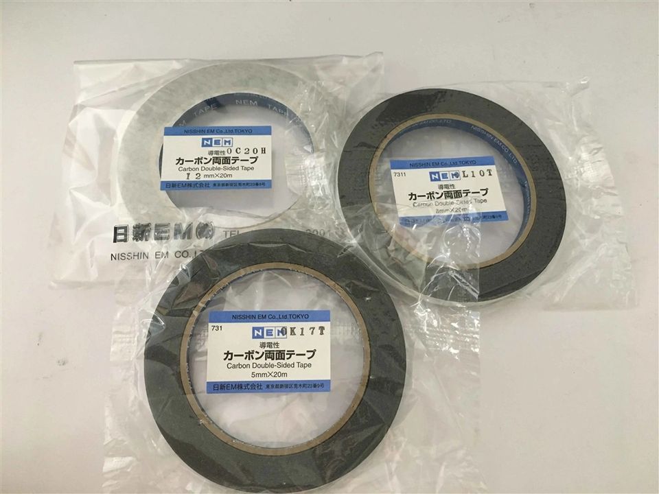 นิสชินเทปคาร์บอนนำไฟฟ้าสองด้านนำเข้าจากญี่ปุ่นใช้ได้กับกล้องจุลทรรศน์อิเล็กตรอน ความหนา 5 มม. 8 มม. 12 มม. ความยาว 20 ม.