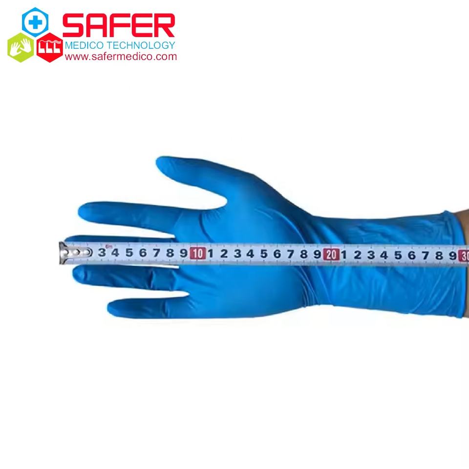 ชื่อผลิตภัณฑ์:ถุงมือนิรภัยไนไตรล์สีน้ำเงินขนาด290มม. จัดการอาหารผงฟรี