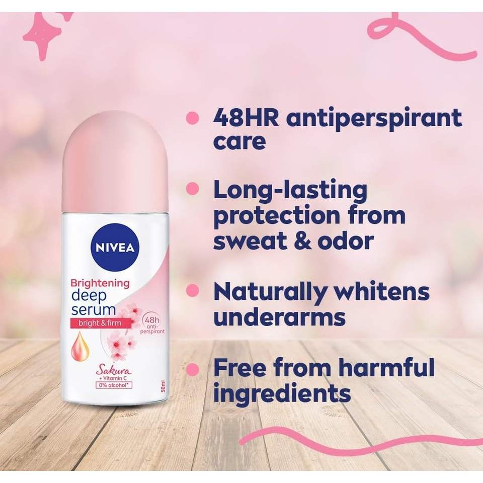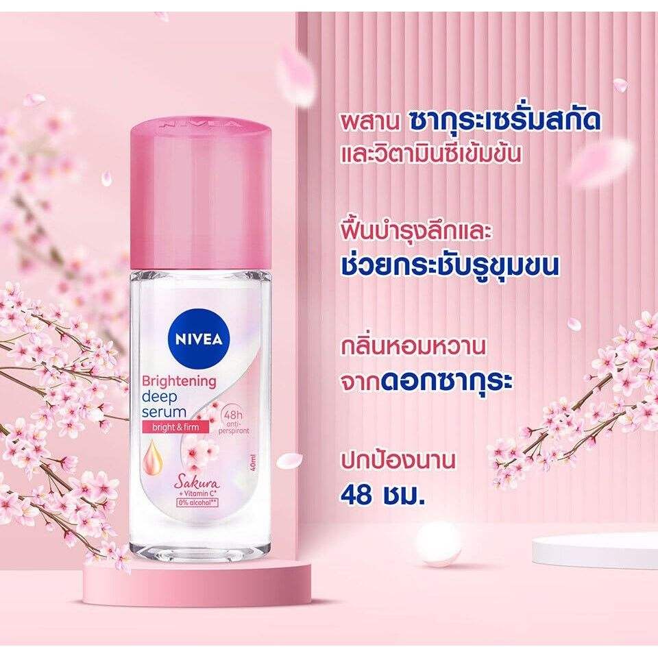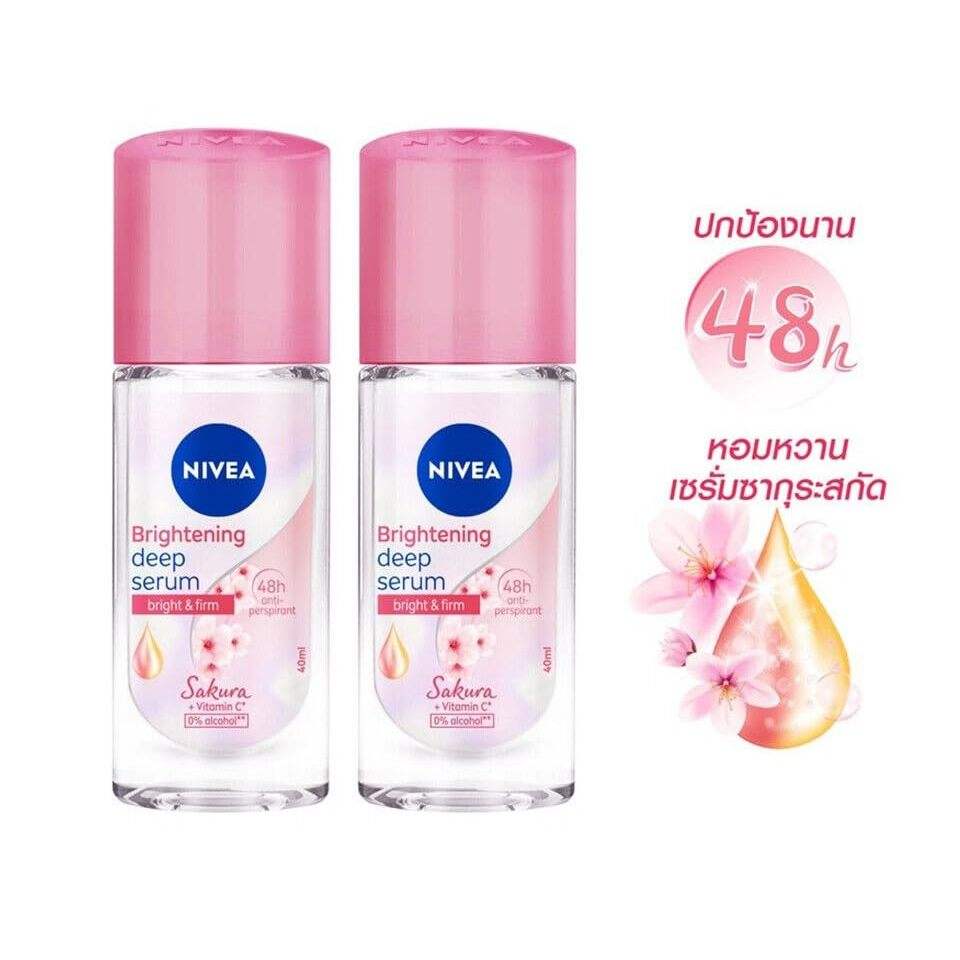 Nivea Brightening SAKURA Deep Serum Roll ON ระงับกลิ่นกาย200มล. แพ็คเหงื่อ2ตัวพร้อมส่วนผสมทางเคมีขนาด40มล.