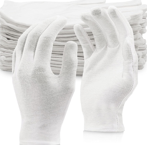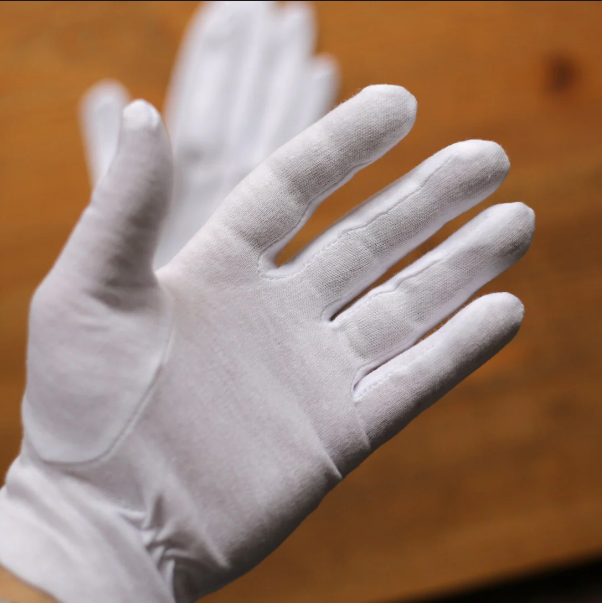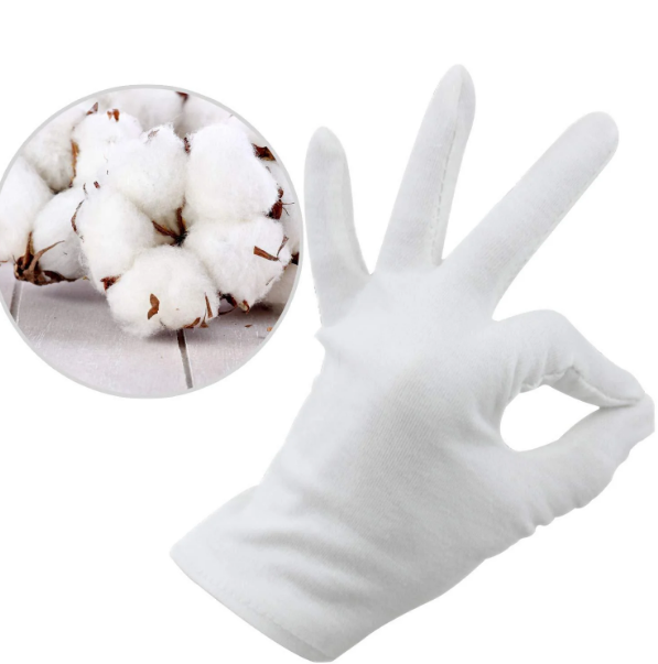 ถุงมือผ้าฝ้ายสีขาวถักกันบาดกันลื่นป้องกันการสั่นสะเทือน7เกจ
