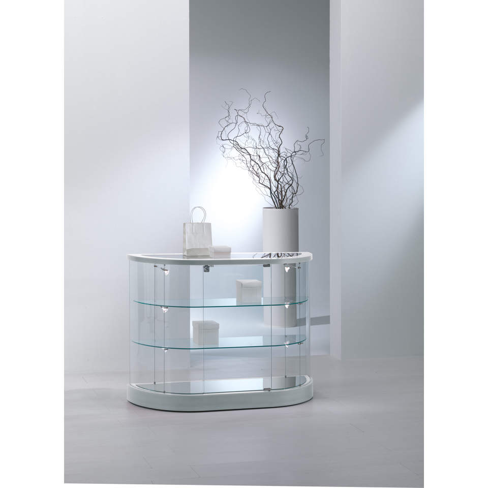 No. 1 Hinged Lockable Door LED Lighting Height Adjustable Shelves 9 cm Tempered Glass Semi-Oval Showcase Kitchen Cabinets