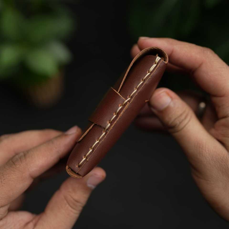 ไม่ใช่. กระเป๋าใส่บัตรเครดิตออลอินวัน 101 ใบ ทำด้วยมือ สีน้ำตาลแดง หนังวัวแท้ 100% รับประกัน 5 ปี