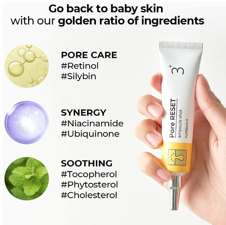 แอมพูลกระชับรูขุมขนหมายเลข 3 สูตรเกาหลี ควบคุมความมัน ลดรูขุมขน เพื่อผิวเรียบเนียนกระจ่างใส