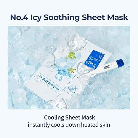 มาส์กหน้า No.4 Icy Cooling & Soothing แพ็ค 5 ชิ้น - คาโมมายล์และเซนเทลล่า สำหรับผิวแพ้ง่าย ลดรอยแดงและบำรุงผิวให้ผ่อนคลายทุกวัน