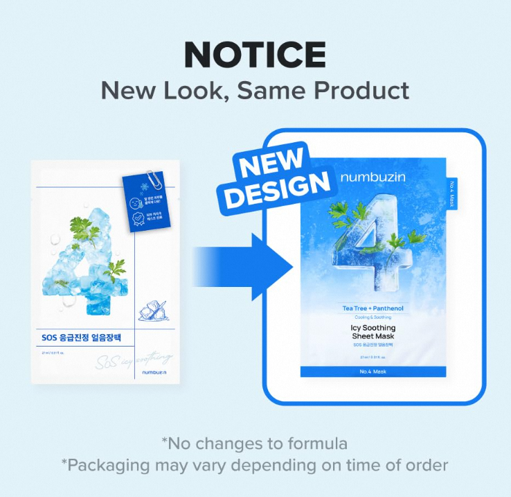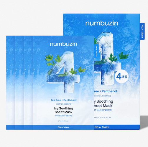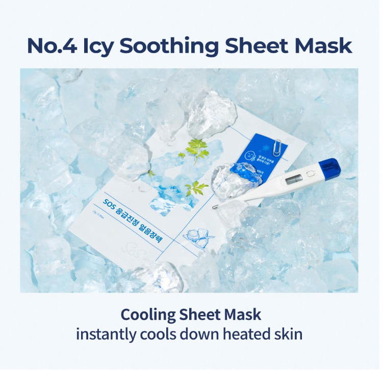 แผ่นมาส์กหน้าเย็นสดชื่น No.4 Icy Soothing Sheet Mask 10 ชิ้น มาส์กหน้าเกาหลีสำหรับผิวแพ้ง่าย ลดรอยแดง ปลอบประโลมผิว ชุ่มชื้น