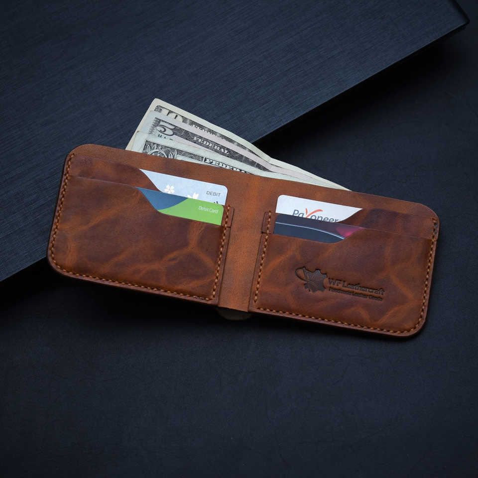 กระเป๋าสตางค์หนังแท้ทำมือหมายเลข 55 พร้อมลวดลายปั๊มแบบแฮนด์เมด