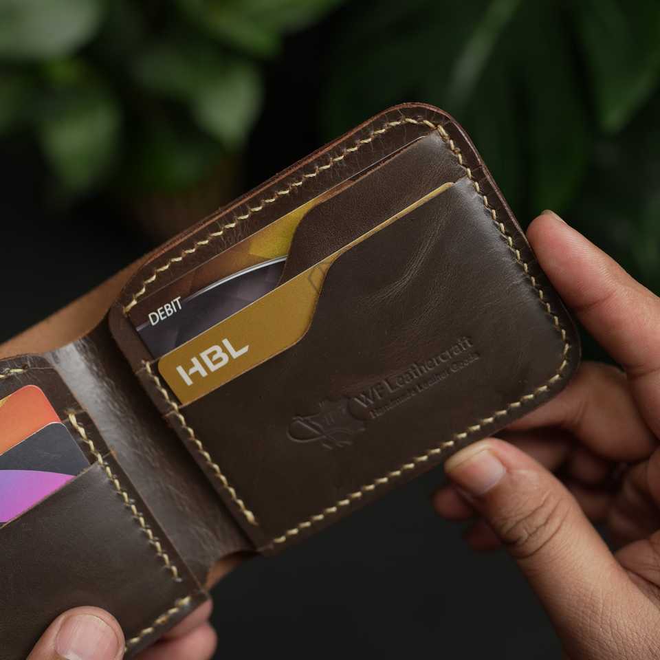 กระเป๋าสตางค์แบบพับสองตอนทำมือ รุ่นคลาสสิค หมายเลข 55-V2 สำหรับผู้ชาย สีเขียวมะกอกเข้ม