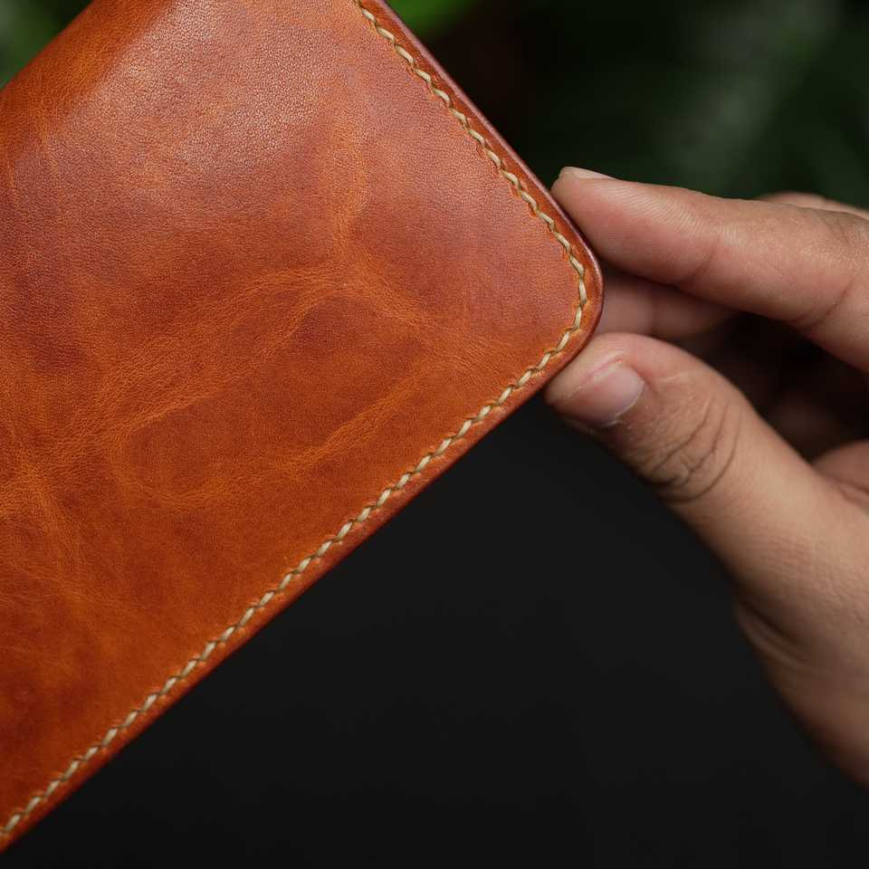 ไม่ใช่. กระเป๋าสตางค์หนังแท้แบบพับสองตอนสำหรับผู้ชาย 72 ใบ ทำมือสไตล์วินเทจ สีแทน พร้อมฝาปิดแบบเปิดพับ ดีไซน์น่ารัก