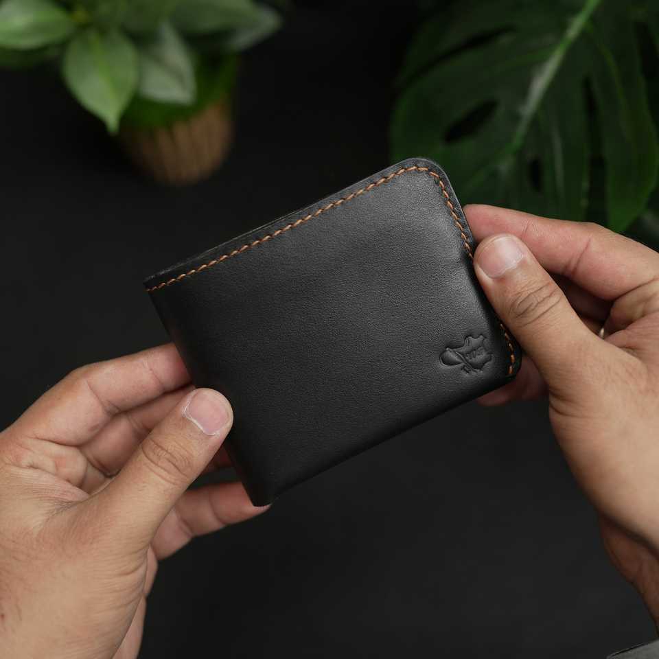 งานฝีมือหนัง WF หมายเลข กระเป๋าสตางค์แบบพับสองตอน รุ่นคลาสสิก ทำมือ 81 ชิ้น พร้อมการรับประกัน 5 ปี หนังแท้สีดำและสีน้ำตาลสำหรับผู้ชาย