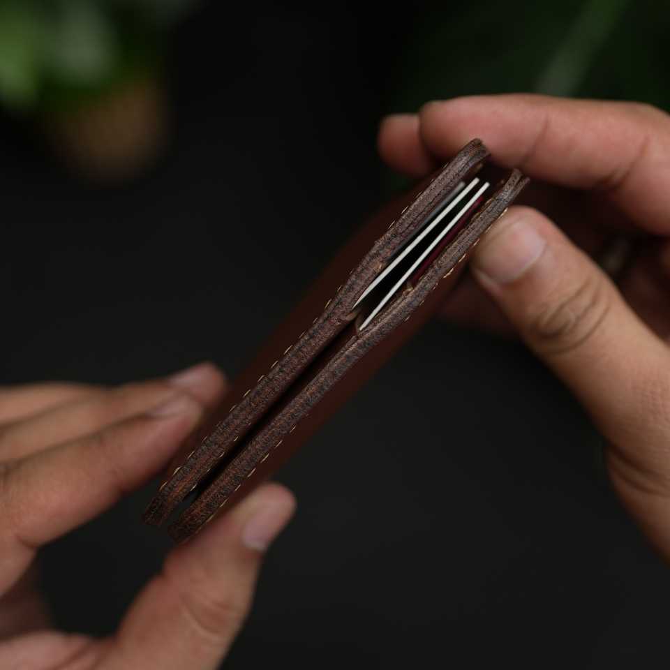 ไม่ใช่. กระเป๋าสตางค์แบบพับแนวตั้ง 86 ช่อง สีน้ำตาล หนังฟอกฝาด ป้องกัน RFID ทำด้วยมือ รับประกัน 5 ปี