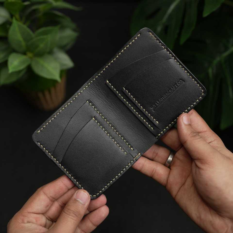 WF Leathercraft No. 86 Slim Vertical Bifold Wallet Black Vegetable-Tanned Leather 5 Year Warranty Unisex