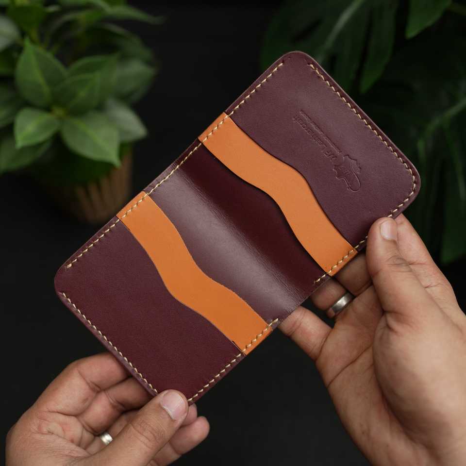 กระเป๋าสตางค์แบบพับสองตอนทรงบาง รุ่น No.88 หนังแท้สีเบอร์กันดีและสีแทน สำหรับทุกเพศ รับประกัน 5 ปี
