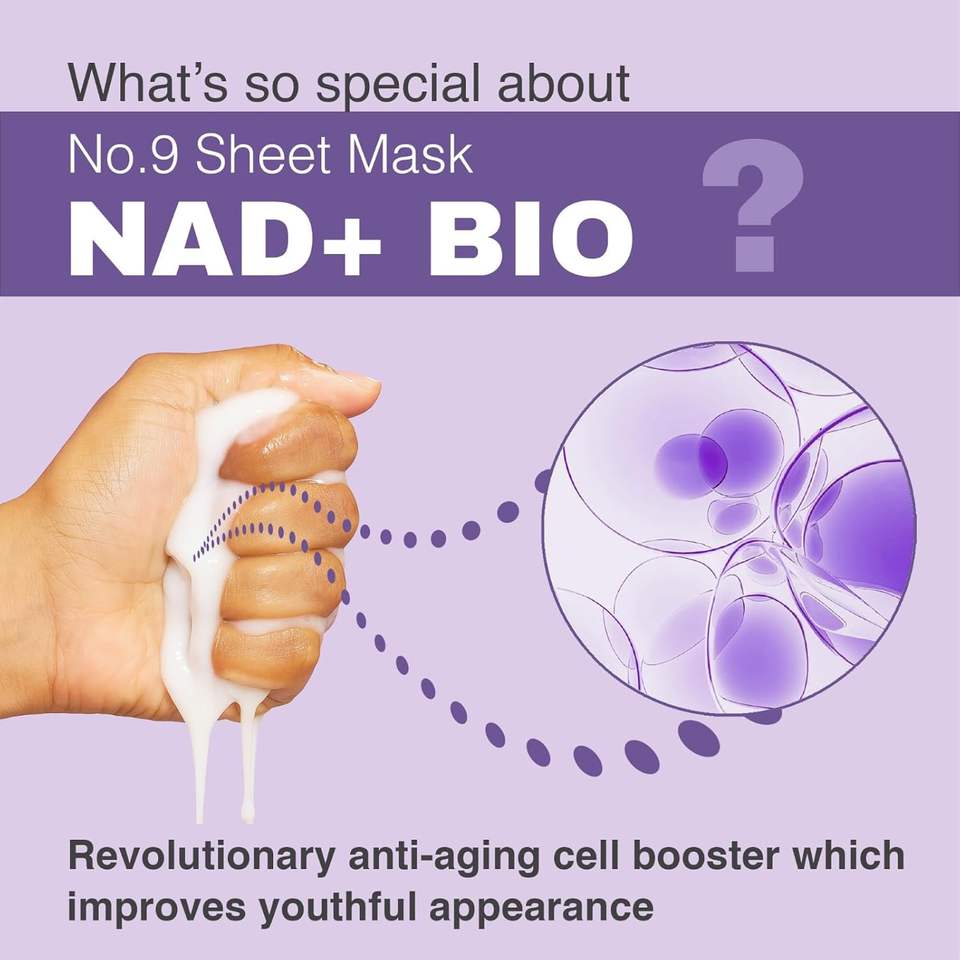 หมายเลข 9 ไบโอเซลลูโลส ลิฟติ้ง แอนด์ เฟิร์มมิ่ง เฟเชียล มาส์ก - NAD+ และเปปไทด์เพื่อลดริ้วรอยต่อต้านวัยและฟื้นฟูผิว (1 ชิ้น)