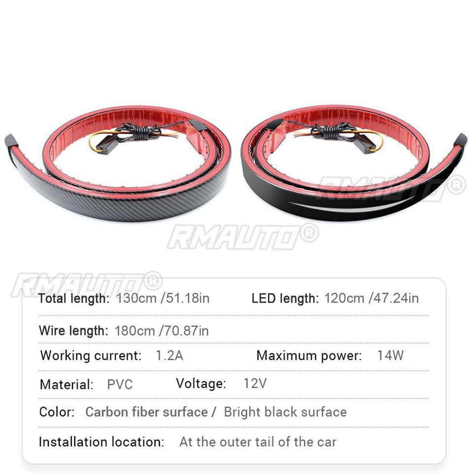 สปอยเลอร์ LED 1.2 เมตร แบบไม่ต้องเจาะ สำหรับติดตั้งท้ายรถยนต์ สปอยเลอร์หลังคาท้ายรถยนต์อเนกประสงค์ อะไหล่ตกแต่งภายนอกรถยนต์ พร้อมไฟเลี้ยวและไฟเบรก