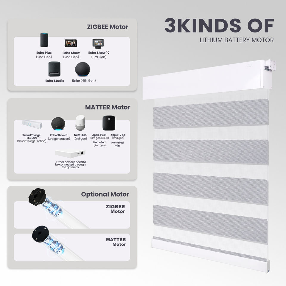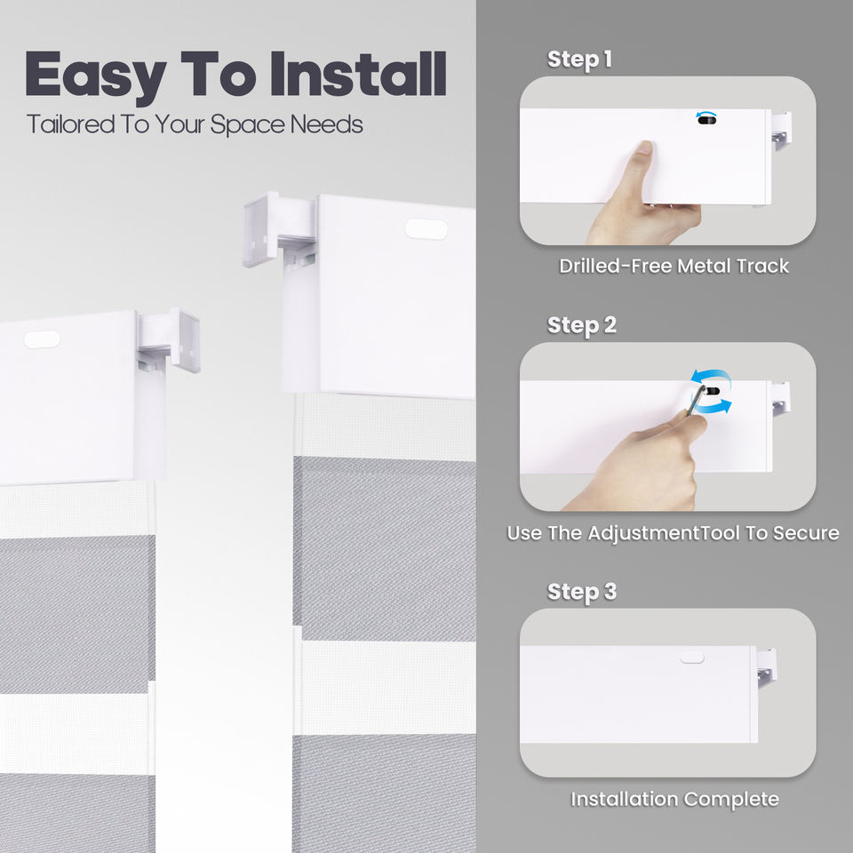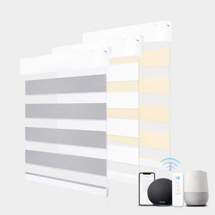 ม่านม้วนแบบมีมอเตอร์อัตโนมัติ รุ่นซีบร้า สำหรับหน้าต่างบ้าน แบบสองชั้น กันแสงทั้งกลางวันและกลางคืน ไม่ต้องเจาะ ผลิตตามแบบ OEM