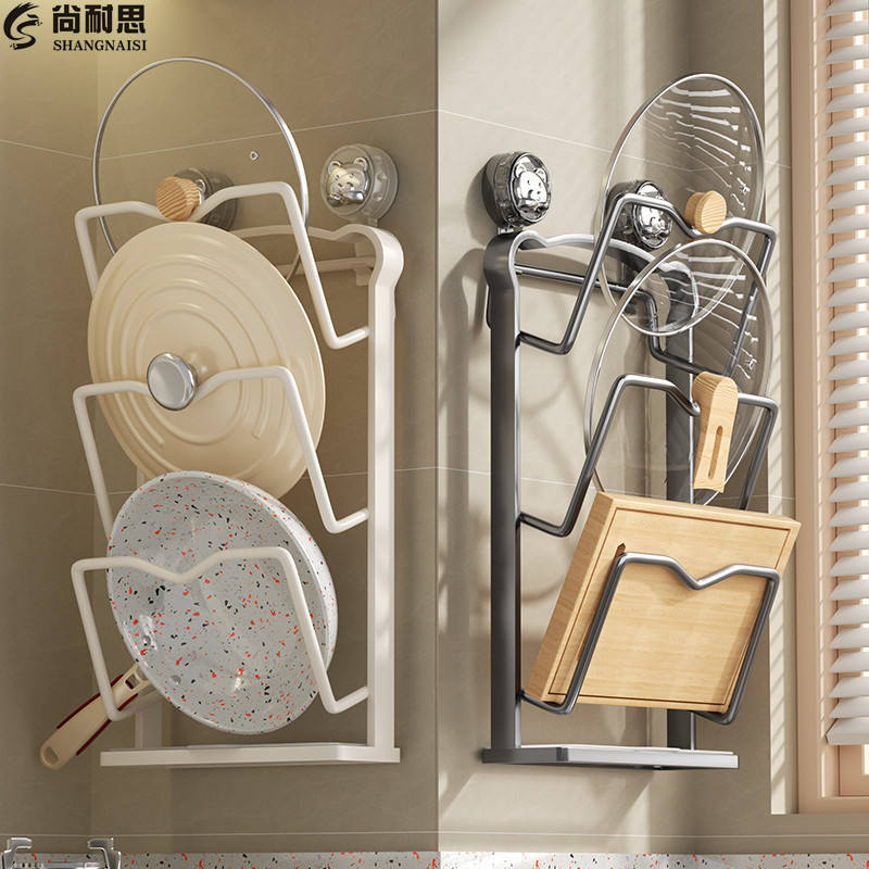 ที่วางฝาหม้อแบบไม่ต้องเจาะติดผนัง ชั้นวางของในครัวสำหรับฝาหม้อและเขียงอเนกประสงค์รูปทรงสี่เหลี่ยมผืนผ้า