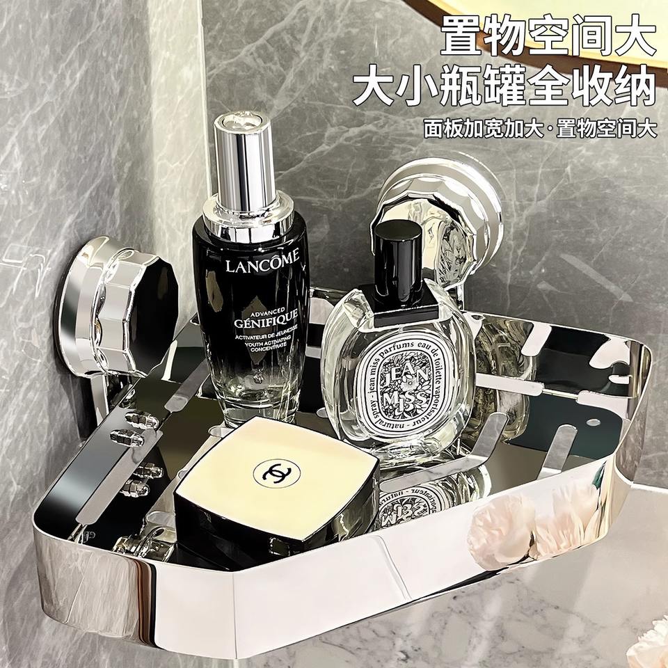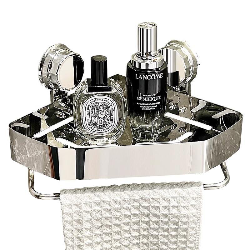 No Drill Suction Mounted Triangular Bathroom Shelf With Towel Bar Corner Wall Storage Rack 50X30Cm Durable Metal Design
