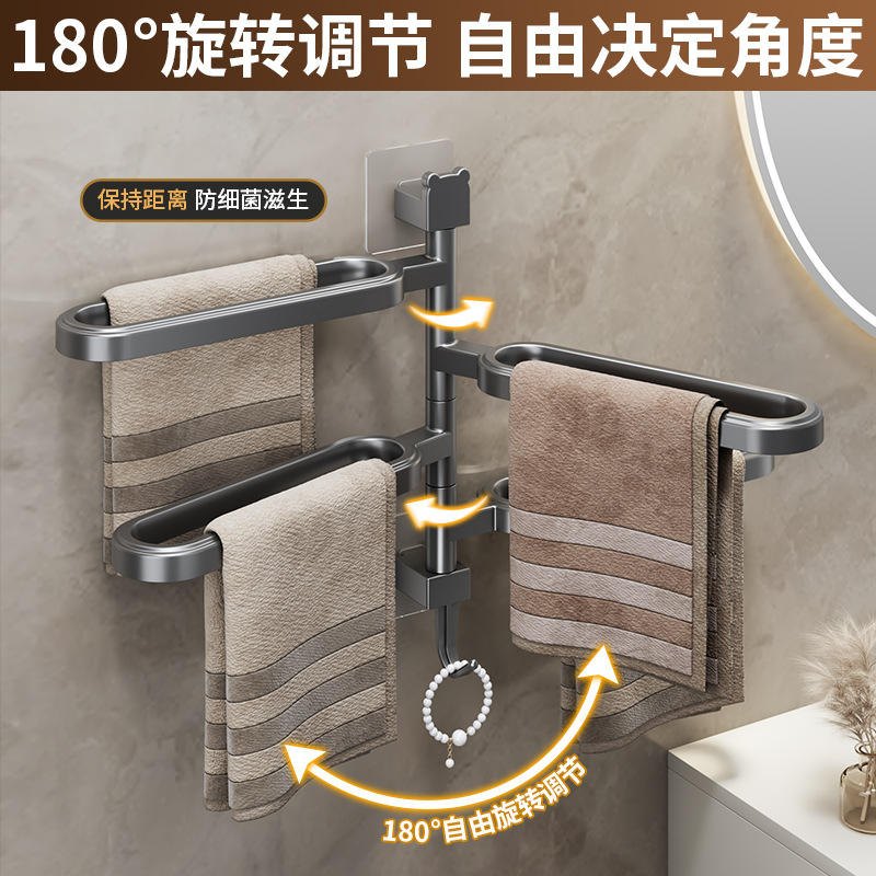 ราวแขวนผ้าขนหนูแบบไม่ต้องเจาะ ติดตั้งด้วยระบบสุญญากาศ หมุนได้หลายทิศทาง ชั้นวางของในห้องน้ำแบบหลายชั้น ติดตั้งด้วยกาวในตัว ดีไซน์มินิมอล