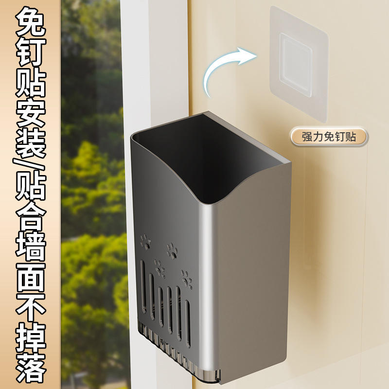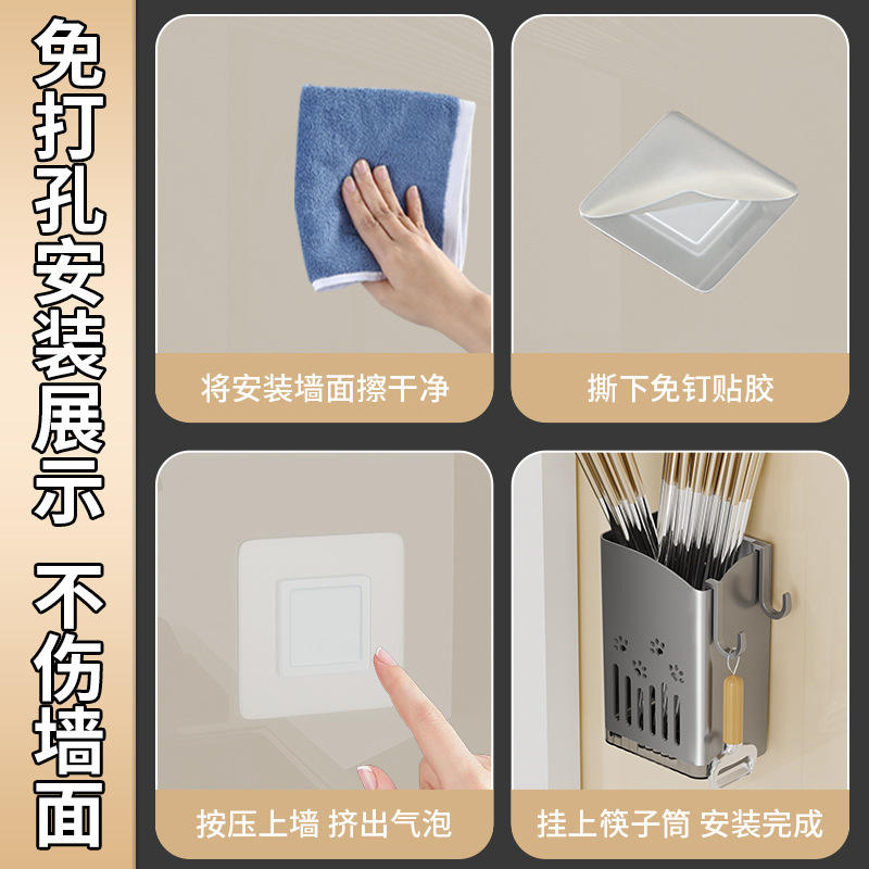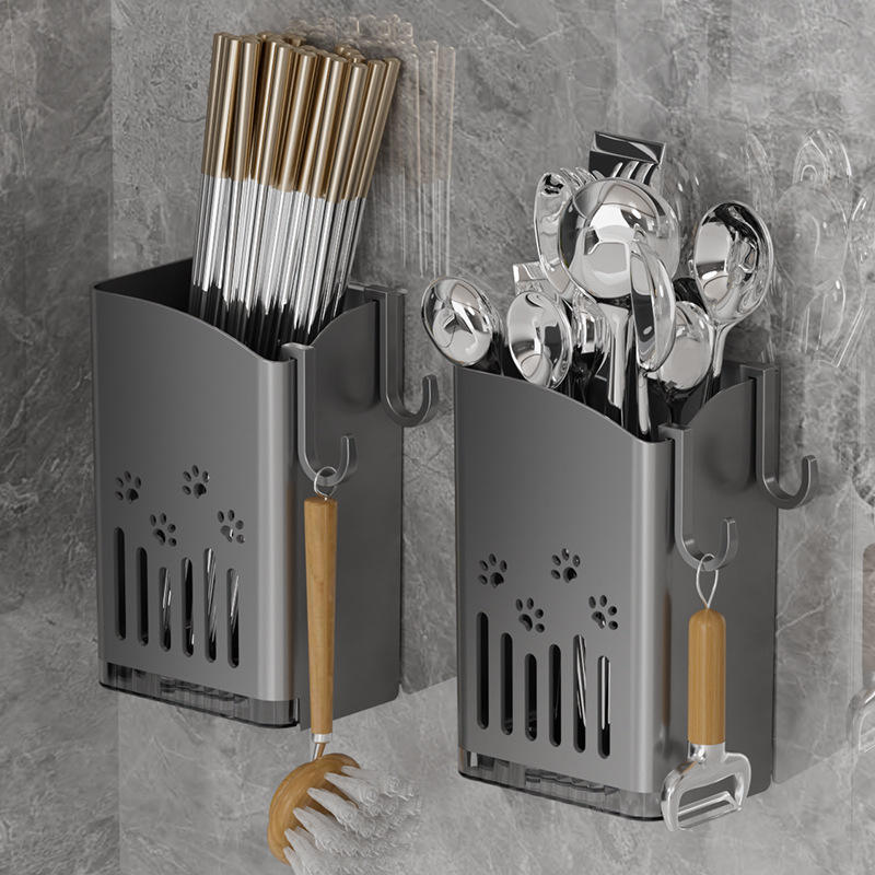 ที่วางตะเกียบติดผนังแบบไม่ต้องเจาะรู ทรงสี่เหลี่ยม พร้อมที่ระบายน้ำ แห้งเร็ว กล่องเก็บของอเนกประสงค์ในครัว พร้อมตะขอ