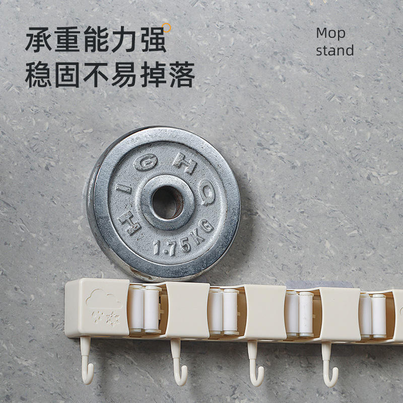 ที่แขวนไม้ถูพื้นแบบติดผนังไม่ต้องเจาะ พร้อมถ้วยดูดสุญญากาศ วัสดุ ABS ดีไซน์มินิมอล สีขาวนวล/เทาเย็น ตะขอแขวนเสื้อคลุมอาบน้ำ ที่เก็บของในห้องน้ำ