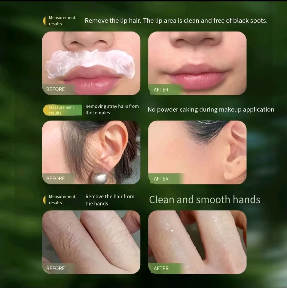 ครีมกำจัดขนลายจุดสีดำอ่อนโยนสมุนไพรอ่อนโยนสำหรับผิวบอบบางใบหน้าร่างกายนุ่มชุ่มชื้นเรียบเนียน