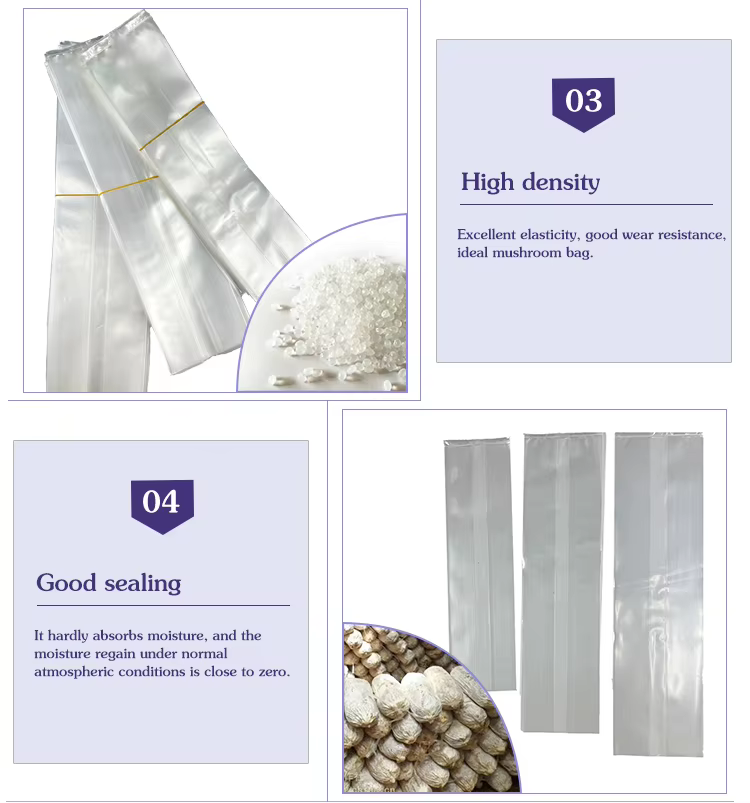 ถุงเพาะเห็ดพลาสติก PP แบบไม่มีตัวกรองขนาดกำหนดเองได้ทนต่ออุณหภูมิสูงสำหรับปลูกหอยนางรมหอมและแผงคอสิงโต