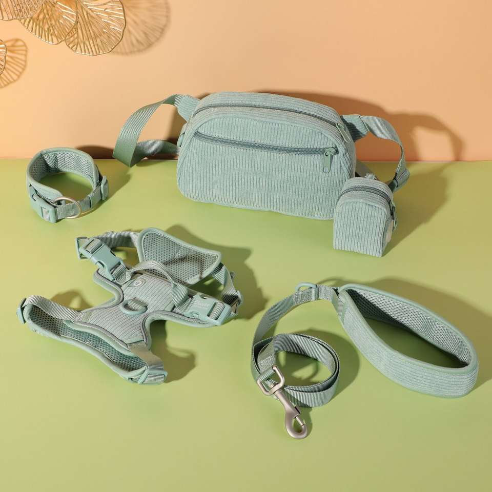 ชุดสายจูงสุนัขแบบปรับได้ชุดสีสะท้อนแสงขนาดใหญ่สีเขียว