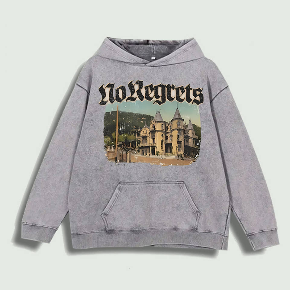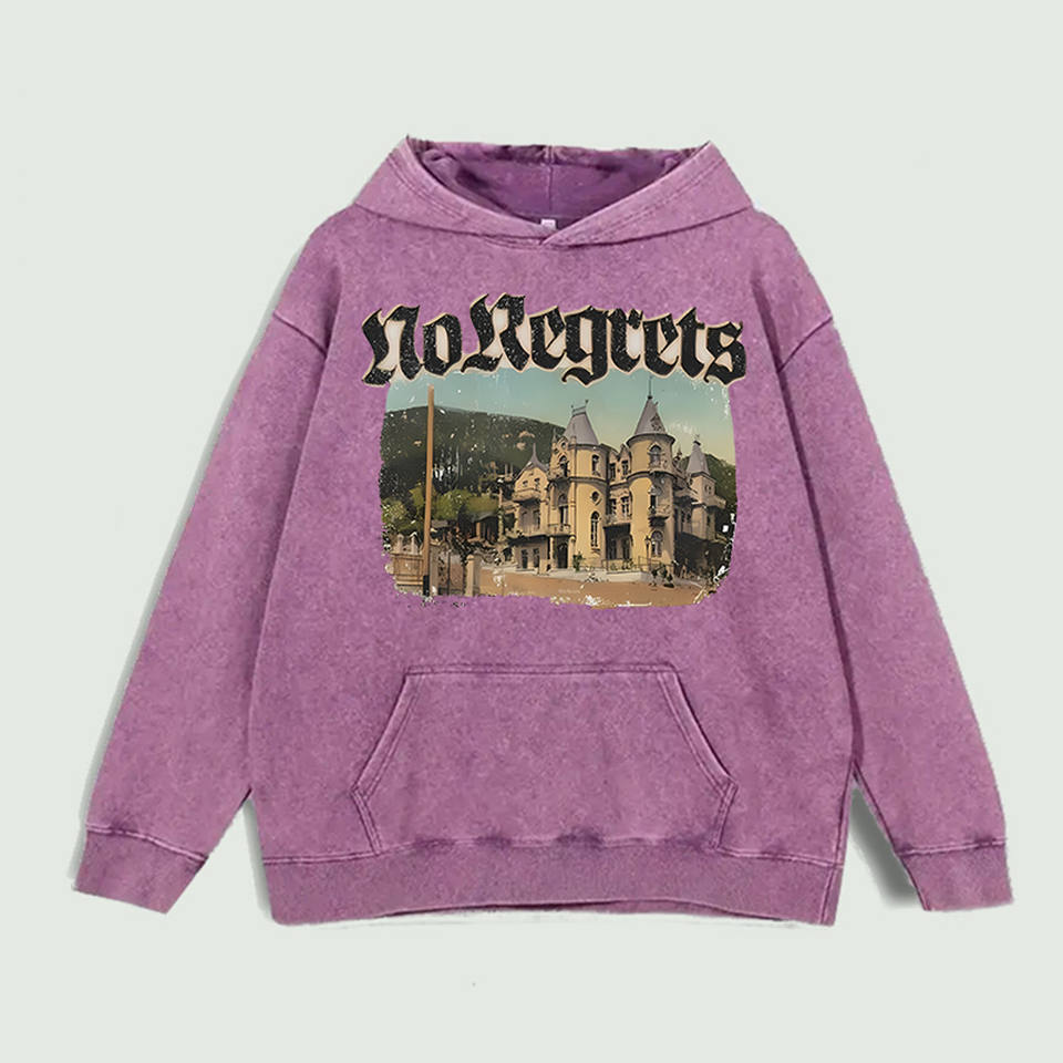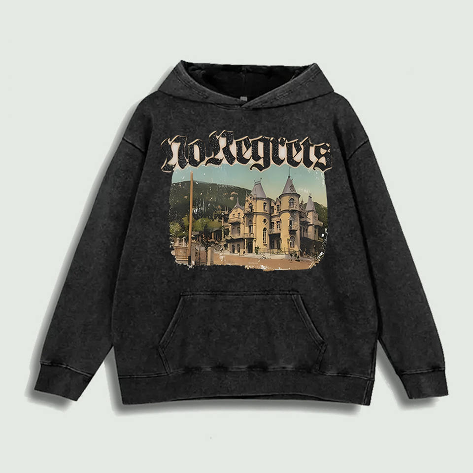 เสื้อฮู้ดลายกราฟิกวินเทจปราสาท ไม่มีความเสียใจ ผ้าฝ้าย 100% คลังสินค้าในสหรัฐอเมริกา 6 สี