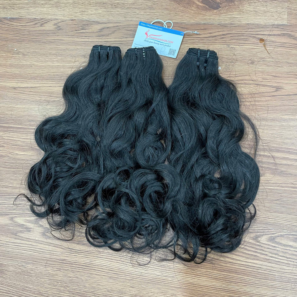 ผมต่อแบบไม่ร่วงผมมัดผมดิบแบบไม่พันกันผมต่อแบบหยักศกธรรมชาติผมมนุษย์ชาวเวียดนามสีดำ