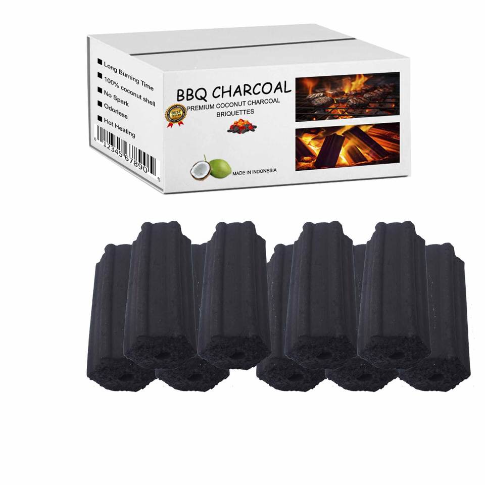 ถ่านก้อนบาบีคิวหกเหลี่ยมแบบไร้ควันทำจากกะลามะพร้าวธรรมชาติแบบไร้ควันสำหรับกิจกรรมกลางแจ้ง