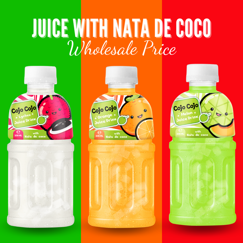 น้ำส้มโคโจโคโจสด ไม่มีน้ำตาล/ไขมันต่ำ ขนาด 320 มล. บรรจุขวด คั้นสด น้ำตาลน้อย ผสมเนื้อวุ้นมะพร้าว รับผลิตแบบ OEM แบรนด์ส่วนตัว