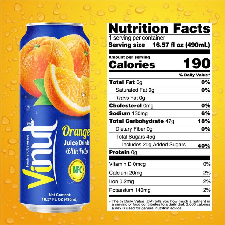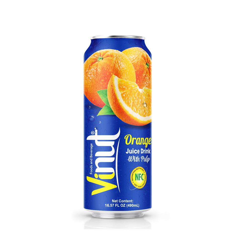 ไม่มีน้ําตาลไขมันต่ํา 490 มล. เครื่องดื่มน้ําส้มกระป๋องพร้อมเยื่อกระดาษผลิตเครื่องดื่มจากเวียดนามตัวอย่างฟรีฉลากส่วนตัว OEM / ODM