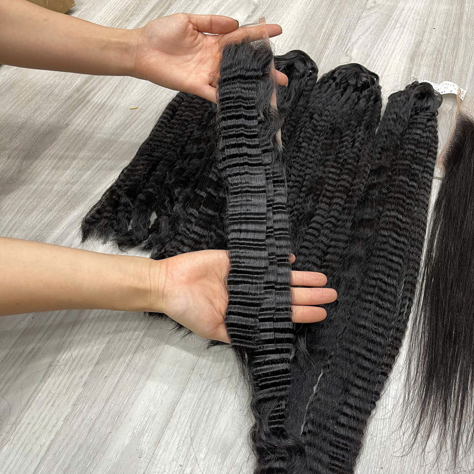 ไม่พันกัน ไม่หลุดร่วง ผมต่อแบบสตีมคิงค์กี้เมชชีนวีฟ 100% ผมแท้เวียดนาม สีดำ