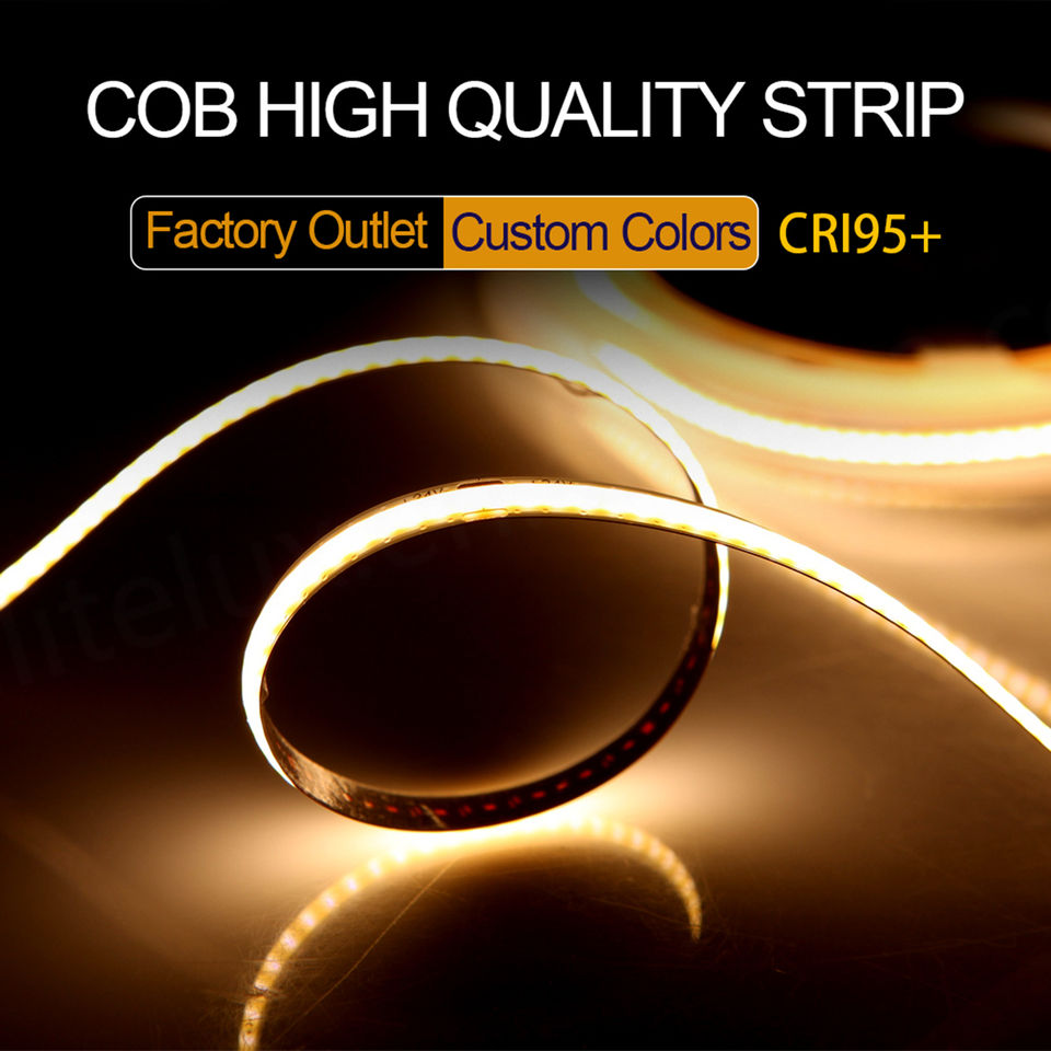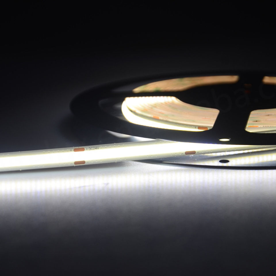 ไฟแถบ COB แบบยืดหยุ่น ไม่มีแรงดันตก RGB ความสว่างสูง CRI90 ชิปแบบพลิก COB LED แถบไฟ LED COB