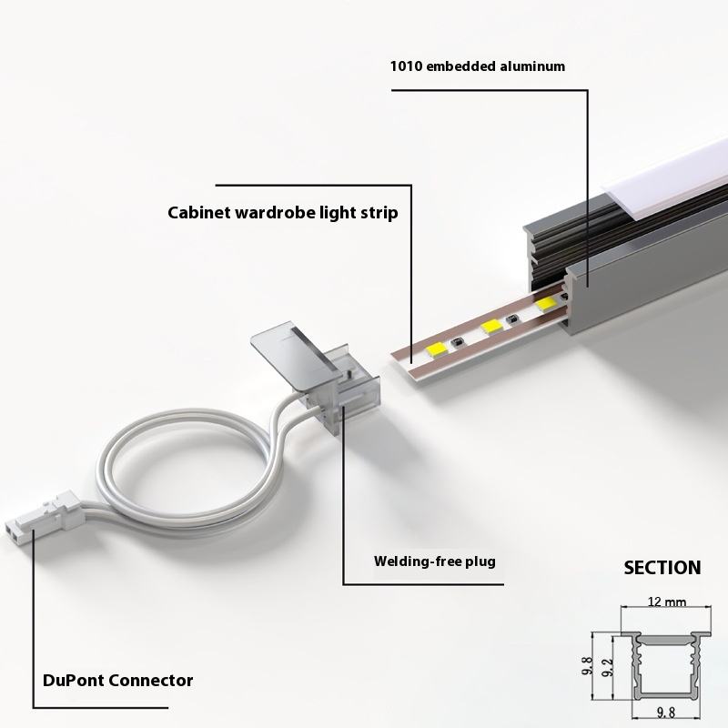 แถบไฟ LED แบบฝังไม่ต้องเชื่อมสำหรับตู้ชั้นวางหนังสือที่มองไม่เห็นแสงเซ็นเซอร์ไวน์ตู้เสื้อผ้าไฟแยกสาย