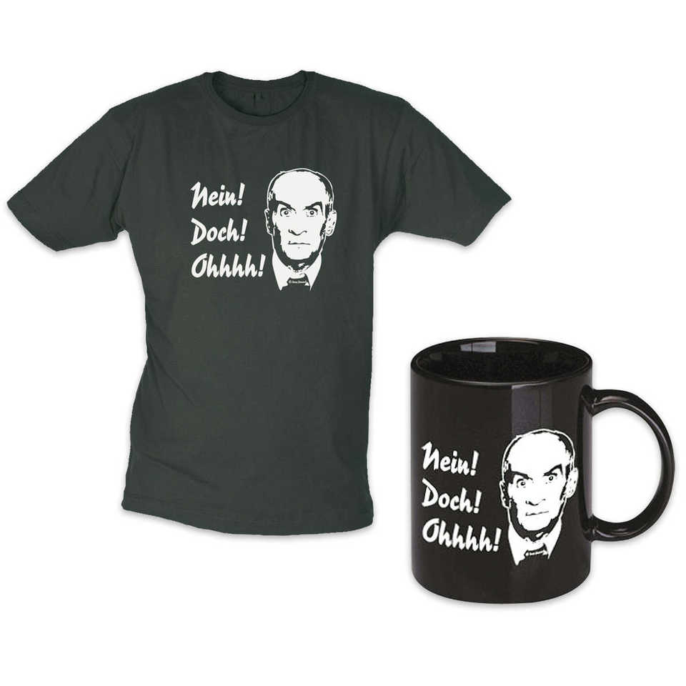 ไม่! ใช่! โอ้! เสื้อยืดผ้าไหมเจอร์ซีย์ 100% ไซส์ S และแก้วมัคผ้าฝ้าย/ใยไผ่ 250gsm แบบอัดลาย