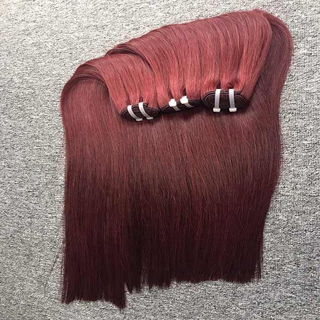 วิกผมมนุษย์แบบทรงกระดูก SDD สำหรับต่อผมแบบไม่พันกันไม่หลุดร่วงไวน์แดงจากเวียดนาม
