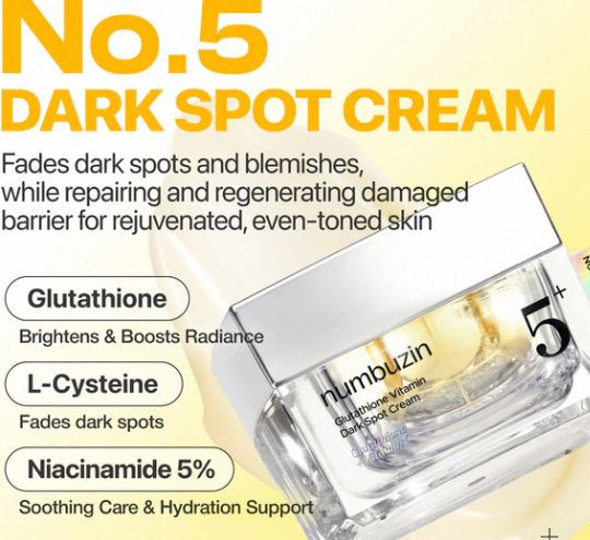 ครีมกลูต้าไธโอนวิตามินซีหมายเลข 5 ครีมลดเลือนจุดด่างดำ ครีมบำรุงผิวกระจ่างใส สำหรับรักษาฝ้า กระ และบำรุงผิวหน้าให้ขาวกระจ่างใส
