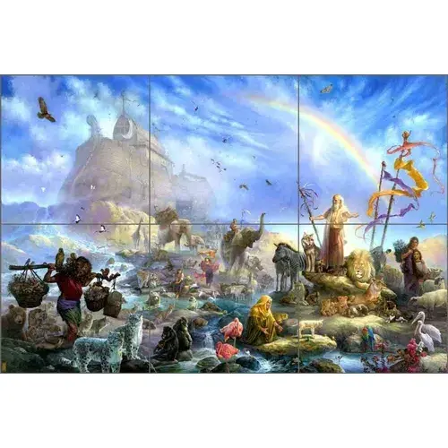 แผ่นกระเบื้องกันน้ำมันกระเด็นของโนอาห์ทอมดูบัวส์ศิลปะทางศาสนาภาพจิตรกรรมฝาผนังเซรามิกติดผนัง TDA020