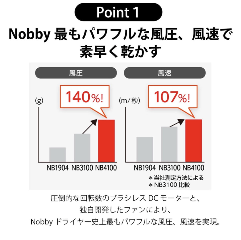 ไดร์เป่าผมโนบี้ NB4100-W รุ่นมืออาชีพ ปล่อยประจุลบ 1400 วัตต์ พลาสติกสีขาว รุ่นญี่ปุ่น มอเตอร์ดีซีไร้แปรงถ่านความเร็วสูง 3 ระดับ