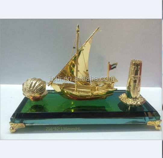 เรือดอว์อาหรับคริสตัลสีทองสั่งทำพิเศษสำหรับตกแต่งสำนักงานและเป็นของที่ระลึกของขวัญแบบอิสลาม